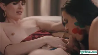 Smalltits shemale and her busty bestfriend are on the couch kissing each other passionately.After that,she lets her busty bestfriend suck her shecock and in return,she licks her pussy first to makes it wet before she fucks it so hard.