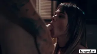 Smalltits shemale Kate Zoha caught by her stepbrother sneaking in their house late at night.After that,she throats his big cock passionately so he wont tell their parents.Next is,she lets him fuck her wet ass so hard.