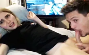 Light-Haired she-male blow-job from husband web cam