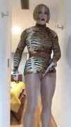 Thyra the Tigress (trans, crossdress, transformation, tights, feminization, mask, doll mask)