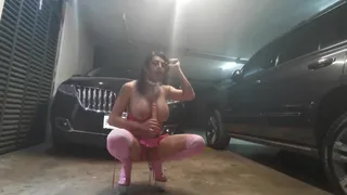 Sissy superslut rectal masturbing in the garage