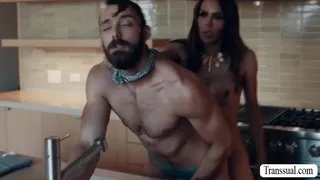 Horny shemale stepmom goes down and lets her new stepson suck her hard tranny cock passionately.After that,she lets her stepson bend over and she then bareback fuck his tight wet ass so deep and fucking hard.
