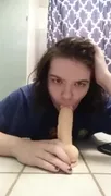 Unexperienced, round FTM experiences deepthroating shaft, gags on six" fuck stick (POINT OF VIEW and sideview)