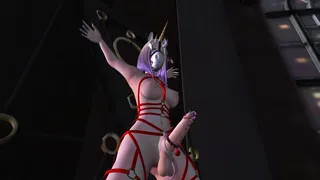 Servant Sissy tart deep anal invasion shag machine while roped eyes covered & ball-gagged