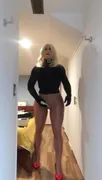 Avrils long gams! (woman mask, trans, cross dressing, mask, high stilettos, tights, tights)