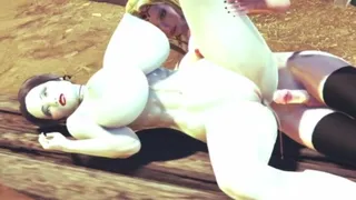 Bela and hermaphroditism doll Dimitrescu rectal poke thick dinky (Resident Sinister three dimensional toon loop with sound)
