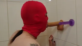 Shag machine femboy takes enormous black lollipop fake penises in backside and jaws