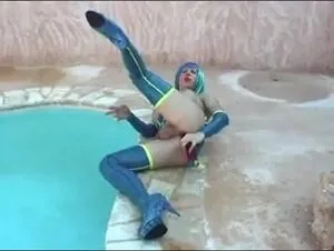 Blue October - Tgirl in Blue Undergarments and Pantyhose Peels Off and Rails Her Faux-Cock