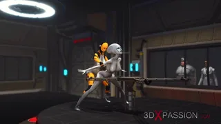 3DXPASSION - Futa fuckfest robot plays with a doll alien in the sci fi lab