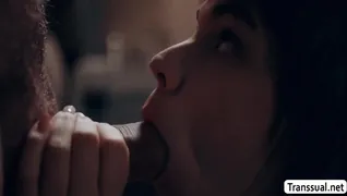 Slutty shemale caught by her stepbrother sneaking into their house late at night.She throats his hard big cock passionately so he wont tell their parents.After that,she lets him bareback her tight wet ass so deep and hard.