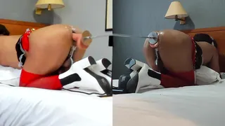 Tranny Erica Cherry sticks her yam-sized trans sausage up stunners bum
