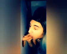 Trans cockslut penetrates and gargles spunk-pumps in Glory Crevasse booth