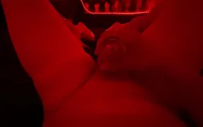 Sumptuous CD Sissy in crimson satin undergarments powerfully edging per Dominas orders
