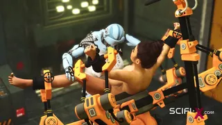 Futa hook-up robot plays with a damsel alien in the sci-fi lab