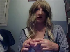 Reni's Wish! Timid hooded platinum-blonde lady puts on her mittens and commences to have fun with herself!