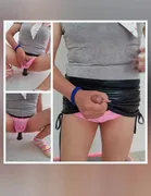 Sissy modeling handsome college girl mini-skirt in white nylon underpants