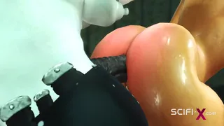 3DXPASSION - Futa fuckfest robot plays with a doll alien in the sci fi lab