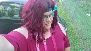 Crazy shemale can't wait to get home, commence finger-banging her vagina in public parking and munch her jizm