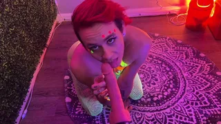 Crossdresser throating cock in blacklight