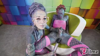 Strenuously Inked She-Creature Railing her Fortunate Colleagues Rod