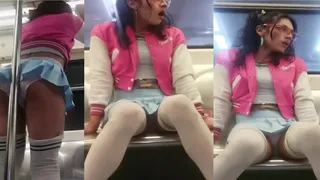 Hermaphroditism three way in subway (dual invasion, slobber-roast)