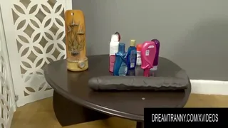 Trans New-Cummer Imola Castro Drains Her Shecock and Plays With a Giant Faux-Cock