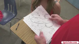 Horny Latina shemale babe Paradise draws bigcocks in her paper, her coach was surprised when he sees her last drawing of her with her shedick. The coach offers his cock to her, TS grabs it and sucks his cock. Coach Colby rims her asshole and bangs her on the table.