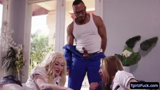 Transsexual bombshells trade Jenna Sucks and Izzy Wilde drooly bj